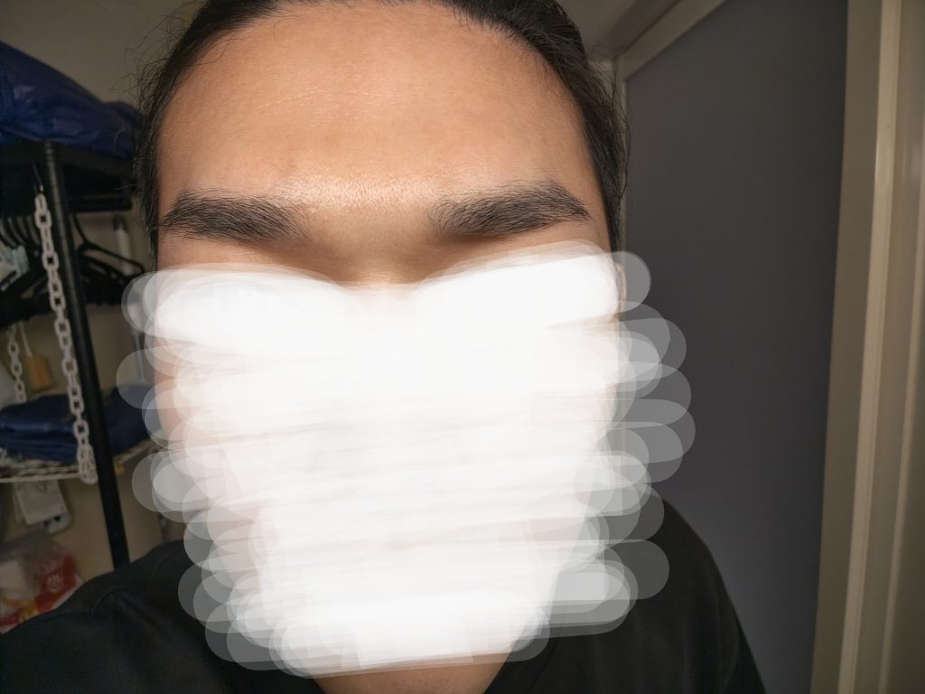 このダウンタイム期間はインクが滲んだり治りが遅くなるので、洗顔時に強く擦らないこと汗をかきすぎないようにすることを意識する。従って、筋トレや汗をかく屋外の作業は見送った。