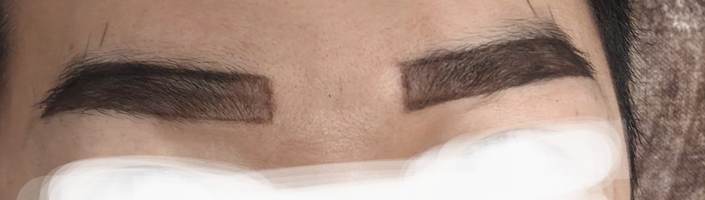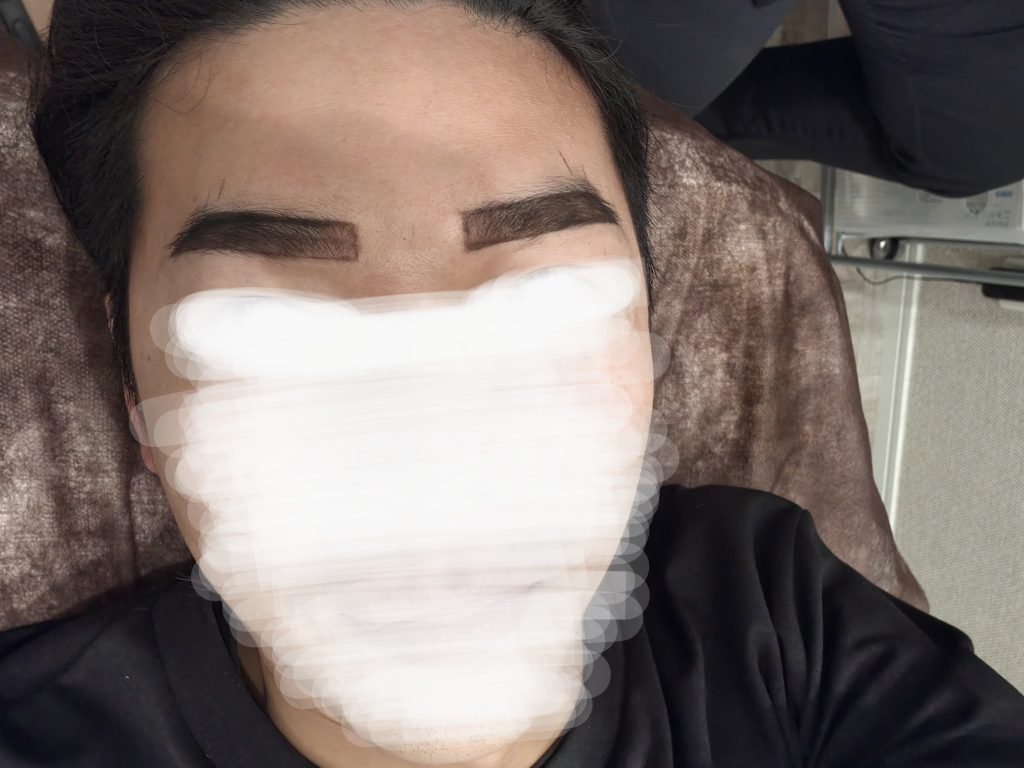 アートメイクのために眉剃りを控えていたけど、それにしては眉山のムダ毛が多い。眉頭は薄く、眉尻は黄金比の輪郭にまで眉毛が届いてない。これはやって正解だった。