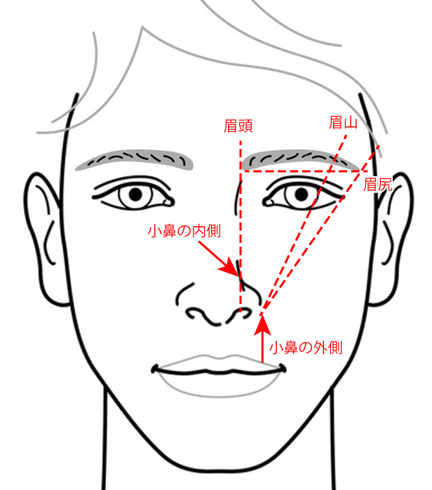 • 眉頭(眉間に最も近い部分)